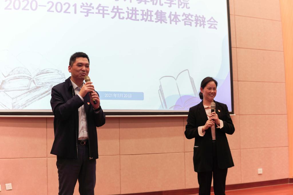 随后,张华和陈祎针对本次答辩会进行了总结交流。他们首先肯定了候选班级的班级建设措施与成效,对班主任老师和同学们在此过程中的辛勤付出表示由衷的感谢。张书记更是结合自己学生时期多年担任班长的经历分享了自己对于班级体建设的建议:第一,团结和谐是优秀班集体的基础,应遵循“一个都不能少”的原则,全体同学互帮互助、共同发展;第二,学生干部应严于律己,发挥好榜样作用,用集体的创造性思维构建一个具有良好班风、能持续发展的班集体。第三,优秀的班集体必然是学习型班集体,而优秀的学习成绩不是凭空得来的,同学们应以勤奋练就真才实学,在专业学习领域不断探索、钻研,提升综合素质。