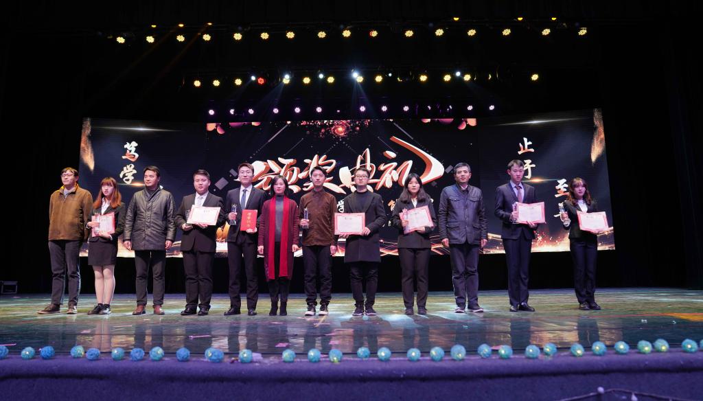 领导和老师齐唱《相亲相爱一家人》将晚会推向高潮。晚会现场进行了“智能之星”及“抗疫先进个人”颁奖、演绎《抗疫》歌舞剧,为学生树立了榜样作用,传递青春正能量。学生自主编排的《干大事》、《大话西游》、《斧头帮与江大》等话剧在诙谐幽默的演绎中传递出热爱生活,珍爱生命的蓬勃朝气。舞蹈《Burn it up》及《Breaking》激情澎湃,研究生代表的歌曲串烧、十佳歌手《全世界谁倾听你》、八谐享乐社《说散就散》用歌声打动现场师生。充满趣味性的抽奖活动穿插其中,营造了现场热烈的氛围。最后,学生会带来歌舞串烧,在动感的舞姿中展现智能学子的风采。