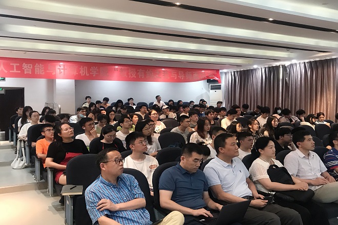 党委副书记陈祎,计算机系教授柴志雷、蒋敏、毛力、李光辉,数字媒体技术系教授王士同、王映辉、谢振平、邓赵红,2018级辅导员王牧、麦日帕提及部分大二、大三年级学生参加活动。