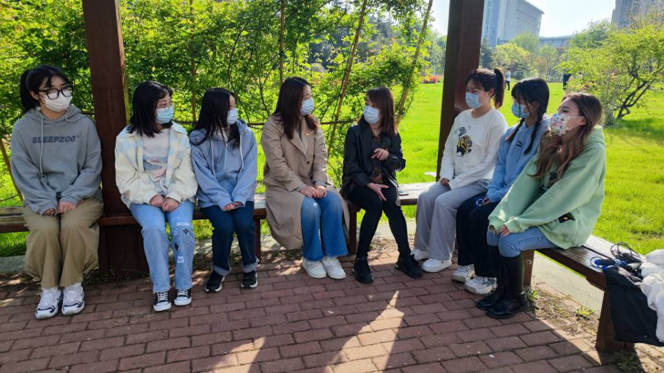 分团委书记沈丹、辅导员王牧老师邀请对接宿舍的同学走出寝室,打卡江大校园中的“网红”地标。粉色的晚樱、弯弯的曲水桥、美丽的赤马咀既使学生陶冶了情操、放松了心情,又培养了学生发现美、体会美、相信美的生活态度。