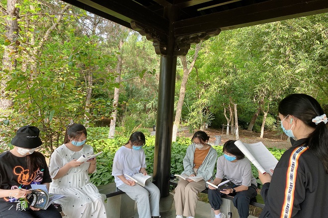 疫情的反复出现让线下教学按下暂停键,为了让同学们放松身心,提高班级凝聚力,在朗读会第二期智能学子以班级学习小组为单位围坐在蠡湖畔、小鼋旁、濠上亭,吹着初夏的微风,分享心理方面的冥想与放松类的书籍,用发自心灵的声音抒发自己最真挚的情感。最后,班级团支部通过主题诵读、故事讲述、好书分享的形式组织全体同学进行交流互动。考虑到部分同学因疫情原因暂未返校,国产传媒