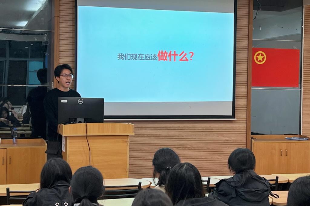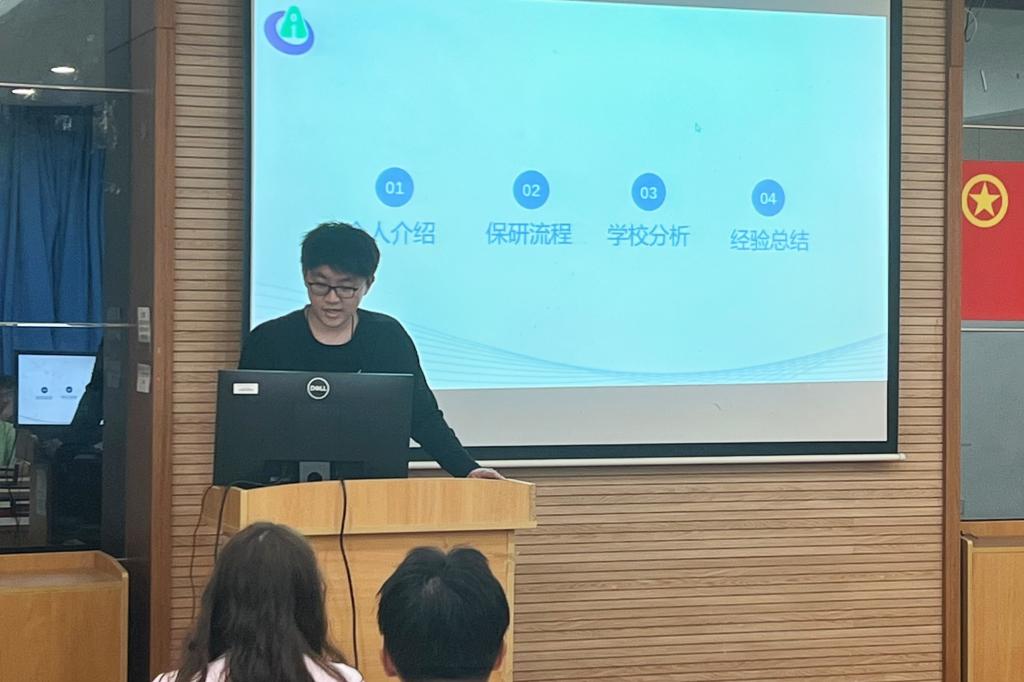 楼B109报告厅举办保研经验分享会,2020级保研学生代表马佳芮、杨家震、李慧敏、杨钧硕担任主讲人。本科生辅导员米宁主持活动。