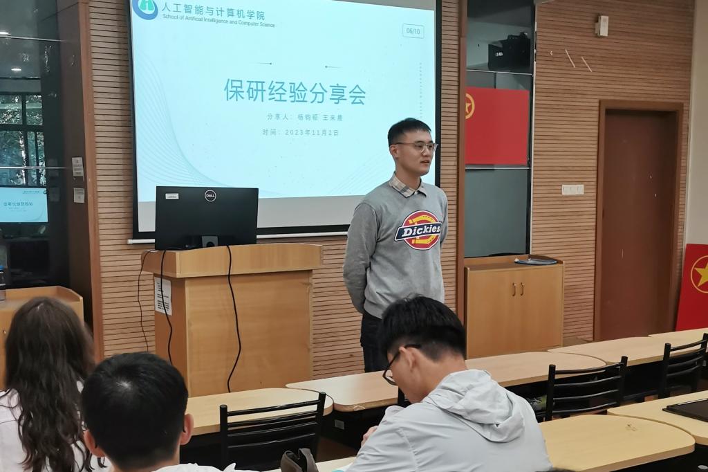 在计算机科学与技术专业专场,保研至东南大学软件工程专业的李慧敏同学以传授“保研攻略”的方式向同学们展示了自己的保研历程,就院校选择、专业选择等问题给出了自己的见解,鼓励同学们遇到困难时要学会主动调整心态,拒绝“精神内耗”。随后,保研本校计算机技术专业的杨钧硕同学作分享。他以“保研本校的自我提升”为题,和同学们交流了保研基本条件、保内综测、保研名额、现阶段努力方向等方面的心得体会;分享了大学期间学习规划线并给出相应建议,从心态上给予同学们支持与鼓励。