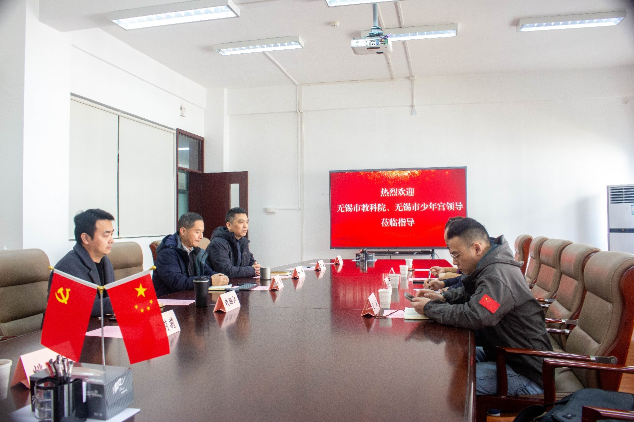 2024年3月8日上午,无锡市教科院教科所所长胡晓军、无锡市少年宫书记、主任李晓红、副主任刘振东、科技部部长任好,国产传媒